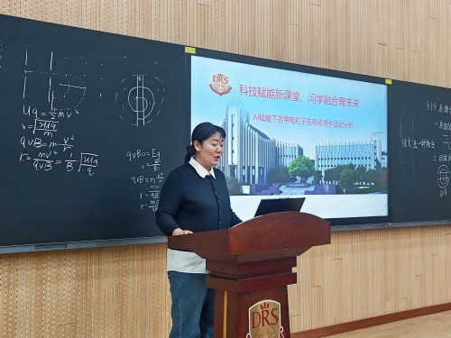 王府高中贾麓老师做《AI赋能下的带电粒子在电磁场中运动分析》讲座,分享了AI应用经验:利用deepseek生成动画,进行可视化教学;利用网络资源和仿真实验优化教学,介绍学校通过“虚实融合”在实验上进行创新。
