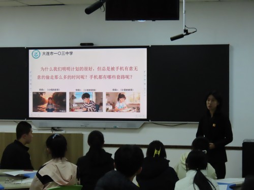首先,大连市一0三中学雷喻童老师展示《“手机刺客”退退退——我的时间保卫战》。该课以“案例求助-寻找手机刺客-解码刺客招数-生成反刺客攻略-迁移应用”为主线,澄清“补偿绑架、推送钓鱼和回应裹挟”三大手机套路,促进学生从被手机各种应用无意识拖拽中惊醒和觉察,增强学习理性和协调性。