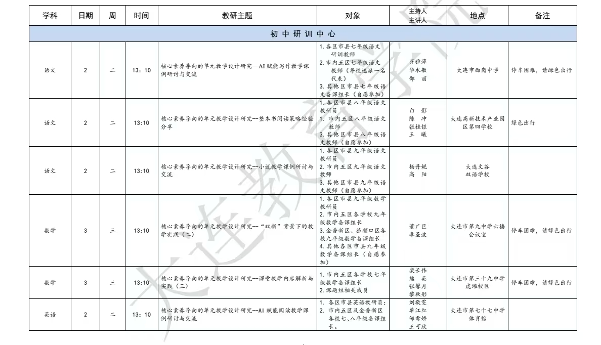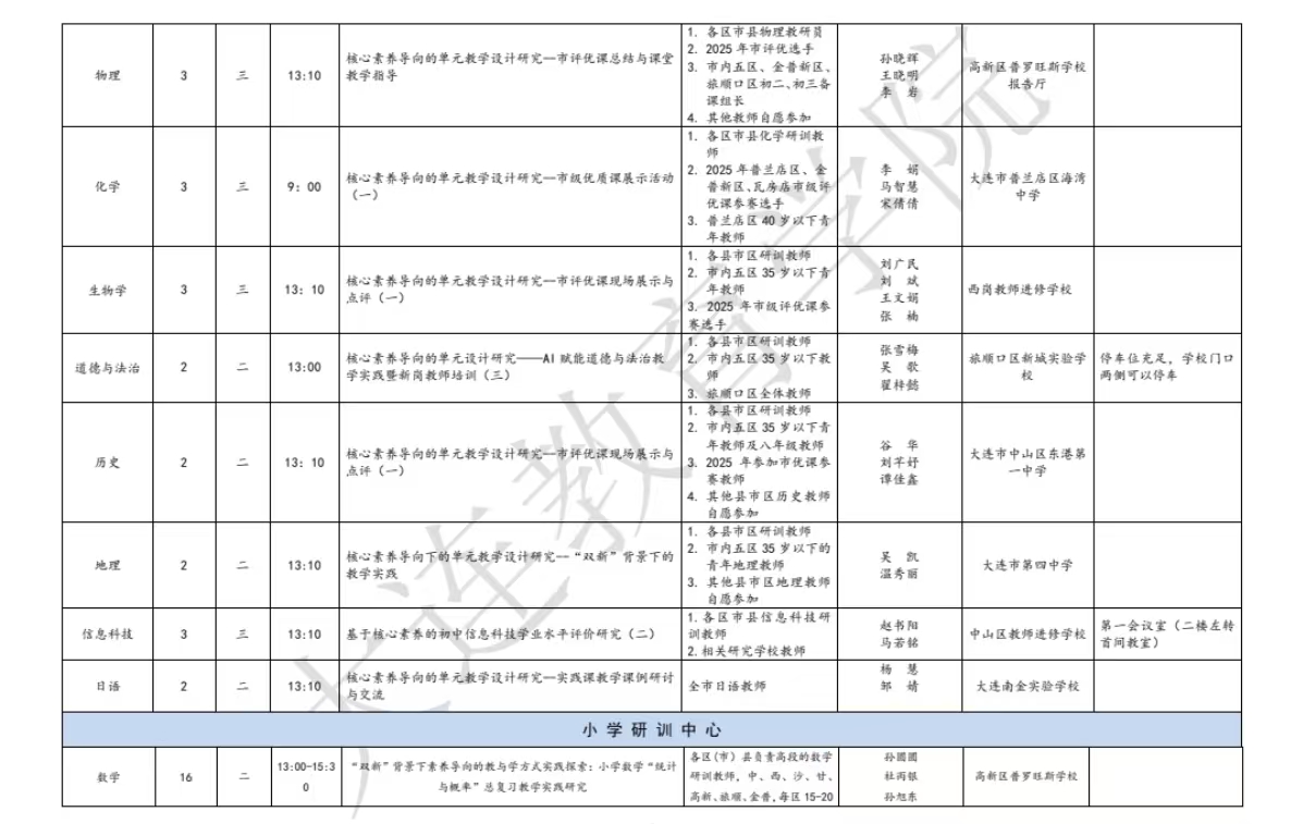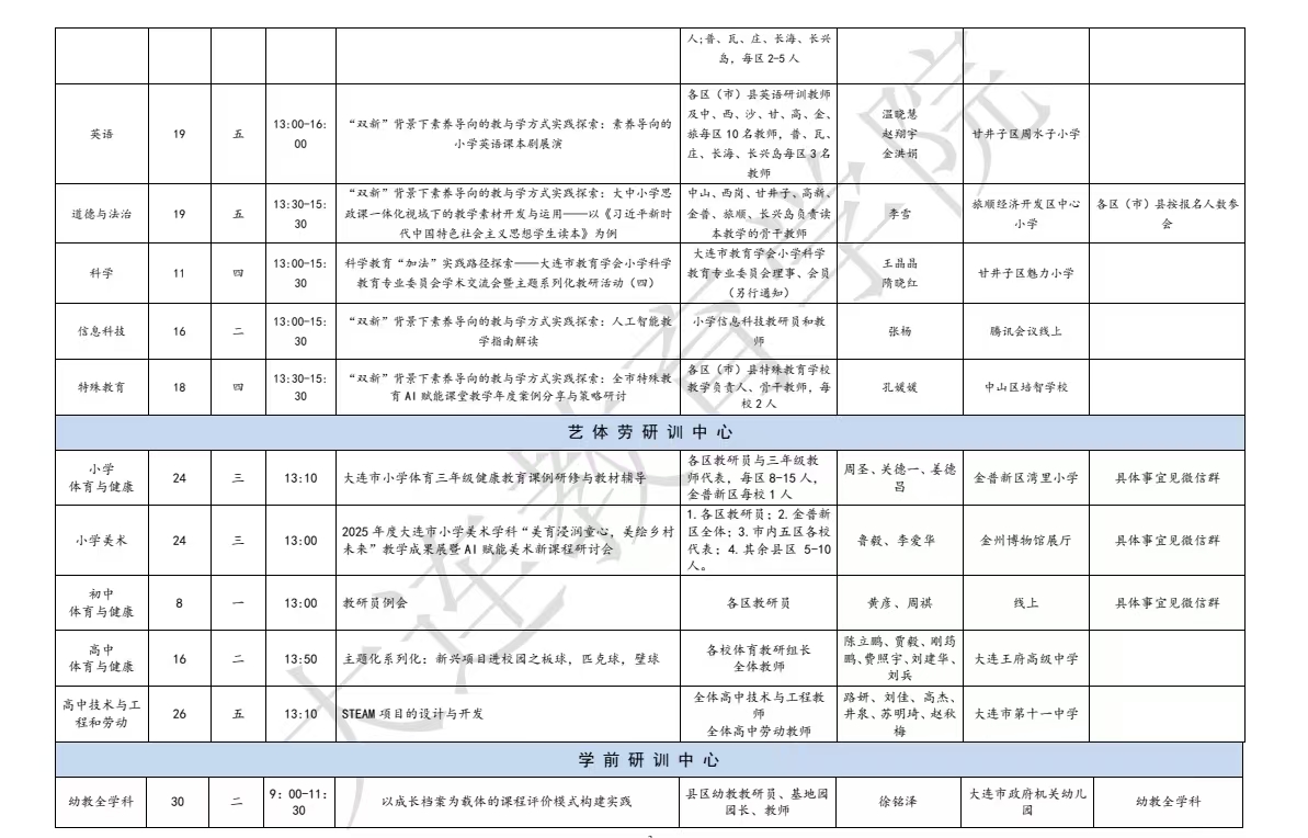 大连教育学院2025年12月教研活动一览表