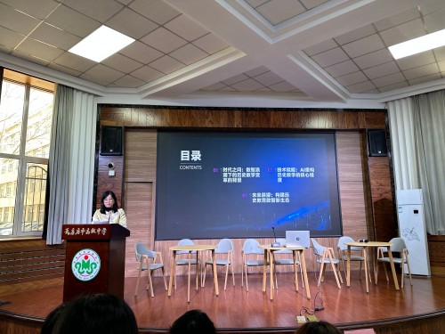 瓦房店高中郭玉臣老师的高一新授课《全球视域下明清的治理与危机》,借助VR技术,在虚实交融中辩证分析中国社会内外形势。瓦房店高中张桐老师的高三一轮复习课,以大单元主题架构,深度整合必修与选择性必修模块,依托AI工具构建三阶复习体系。作为“送教下乡”活动的代表课,开发区十中孙玉雪老师,以《全球航路的开辟》为题展开说课展示。市研训教师郭弘作《AI赋能历史教学的时代转型与发展思考》讲座,以“教育工具变革史”为脉络,串联起从一支粉笔到AI深度融合的历史教学演进历程。崔红岩老师做《AI+历史——重构学科教学的未来形态》专题讲座,聚焦实践落地层面,从五大核心维度,系统拆解AI赋能历史教学的进阶路径。
